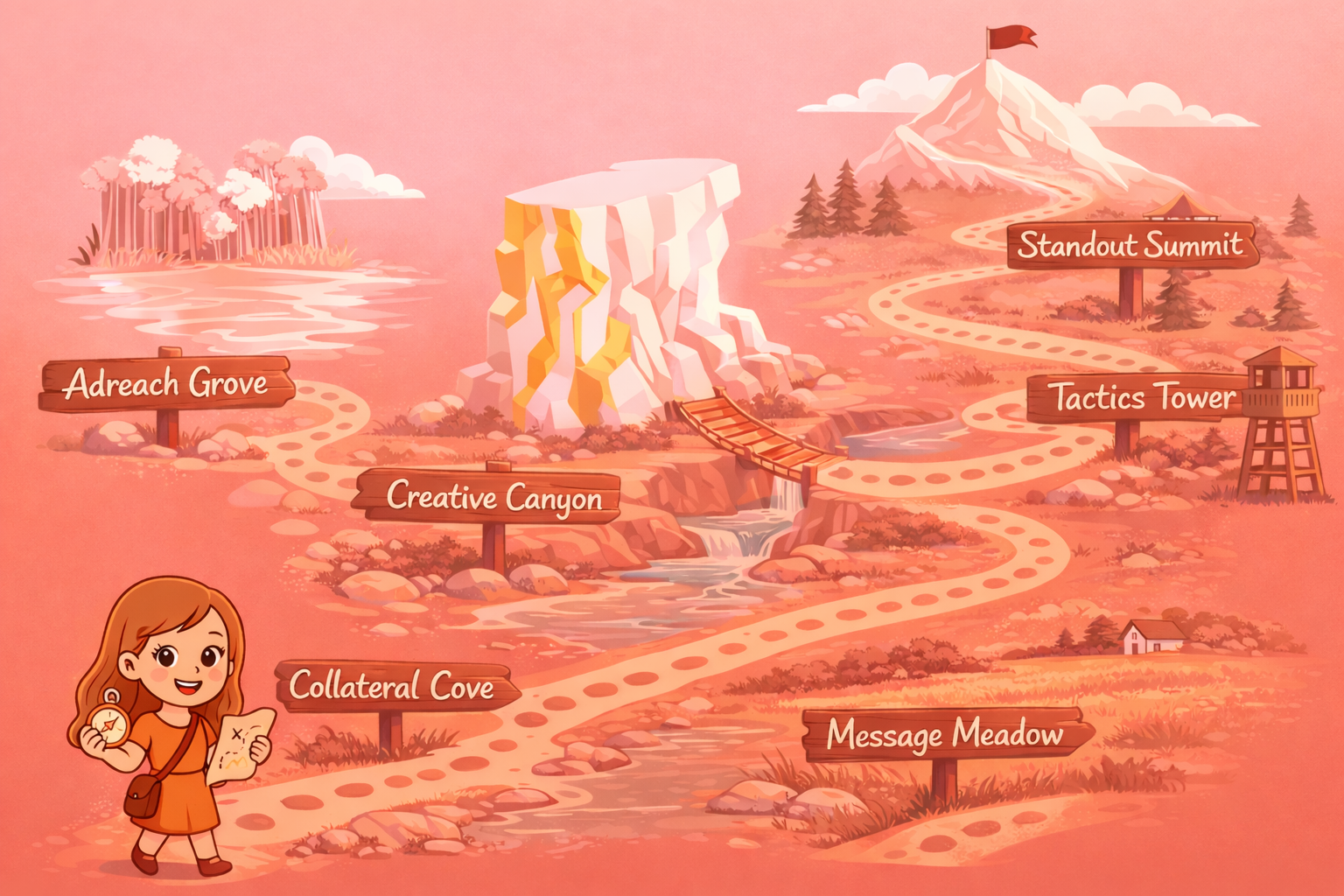 Explore the interactive map to see how I lead brands from their first steps to the peak of ‘Standout Summit’. Each territory reveals a piece of my process, my expertise, and how I map your standout path.